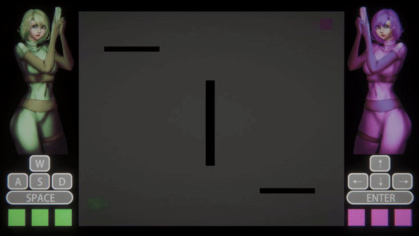 When a player shoots, the direction they are facing lit up, and they light up as well; it is the key design for this game: high risk, high reward.